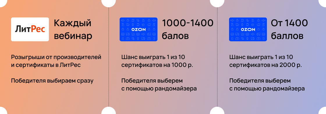Зарабатывай баллы за каждый просмотр вебинара или прохождение курса по продажам и получай призы